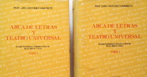 Primer Acto: En el pórtico de su obra escrita entre 1784 y 1814, Arca de Letras y Teatro Universal, Fray Juan Antonio Navarrete de su puño y letra...
