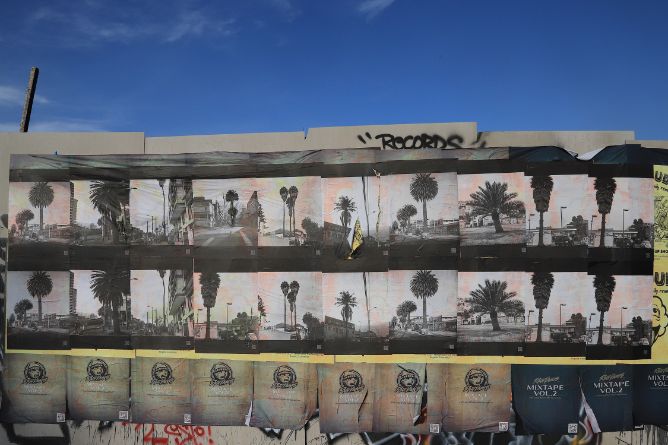 Pero no eran solo palmeras sino el recorrido, el tránsito, con el ojo capturador de memoria, inquietud, asombro. Esto la condujo al camino de Macuto que en su infancia recorría con su familia. Las rocas y las palmeras al borde del mar captaron su atención sin carros, personas o edificios, y así produjo la secuencia que luego imaginaría a partir de sus múltiples viajes, como también de ese modo interviniera gráficamente en el famoso viaje fotográfico de Robert Frank que inspiró la excepcional novela de Jack Kerouac, On the Road.