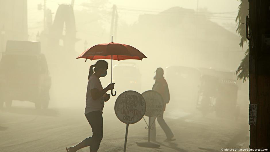 La ceniza volcánica, como la que ha escupido el volcán Taal en Filipinas, consiste generalmente en partículas sólidas de roca cristalina y vidrio de unos pocos milímetros, que se crean cuando se fracciona el magma. Además, las erupciones liberan grandes cantidades de dióxido de carbono y azufre, que se condensan, junto con el polvo, en espesas nubes negras de humo.