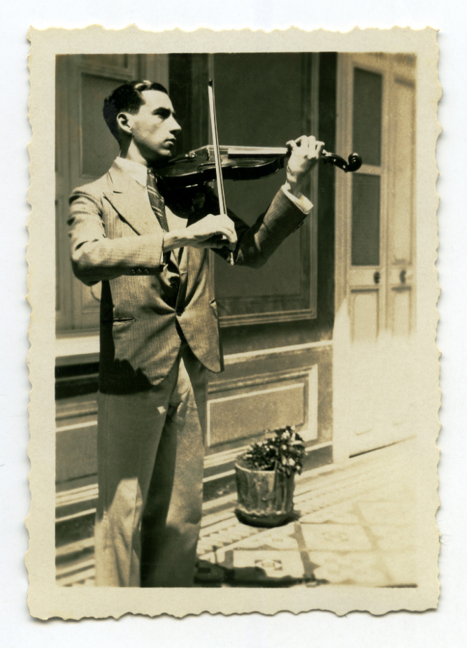 Hombre tocando el violín. Fotografìa de álbum familiar ©Archivo Fotografía Urbana