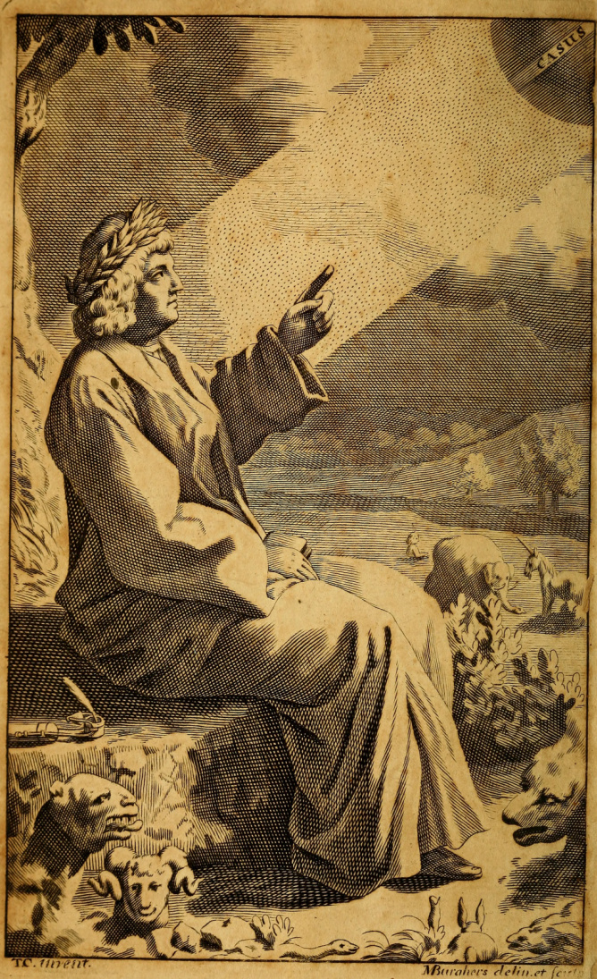 Grabado de Lucrecio. Autor desconocido. Publicado en la edición de «Sobre la naturaleza de las cosas» de J. Matthews para G. Sawbridge,. Londres, 1714