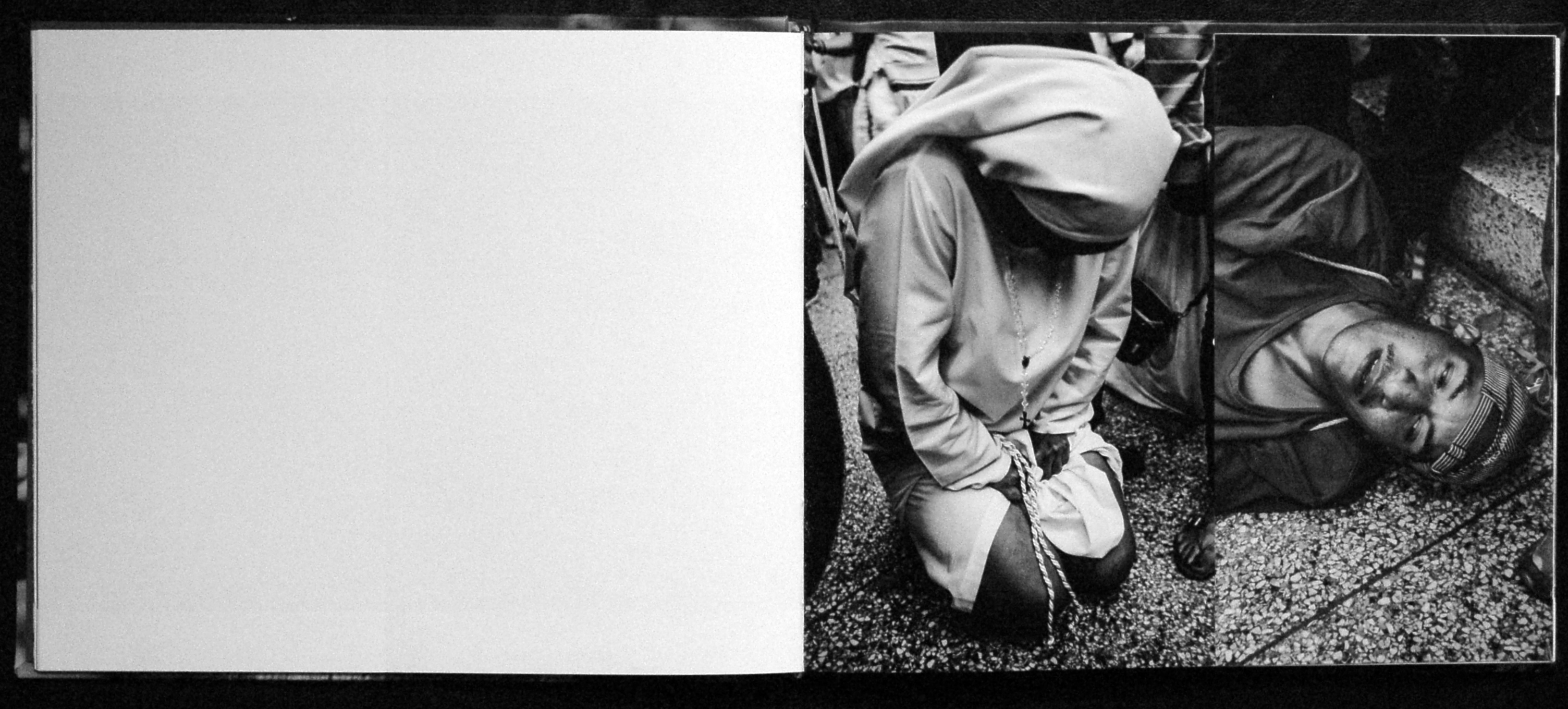 Y una clave para entender “Pido, prometo y pago” como fotolibro está precisamente allí: además de su imagética, de la forma en que compone su discurso visual, la estructura gráfica, como articulación discursiva o lingüística, lo convierten en algo más que un libro para mirar fotos. Es, en su conjunto, un objeto artístico, una obra que en sus dimensiones de 20×23,5 cms, ofrece al público imágenes que, tal como expone Eduardo Segura al cierre del fotolibro, “son ni más ni menos, que la transparencia de un alma sensible a representar un circo ceremonial que habla de un profundo dolor social”.